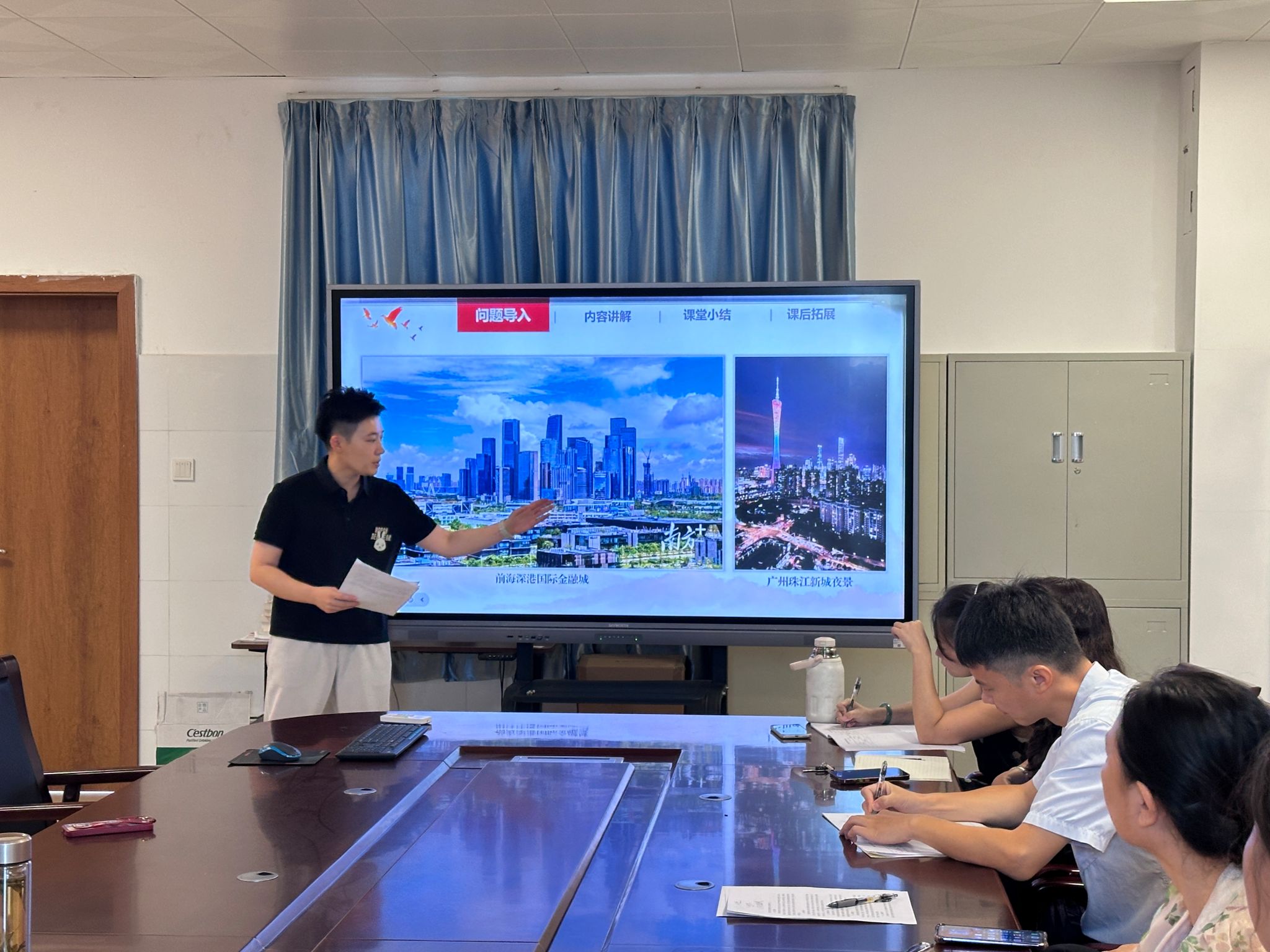 邓鑫怡老师以习近平总书记重要论述为导入,结合现实案例深入阐述粤港澳大湾区的建立过程,展现了广东建设粤港澳大湾区的实践成效,条理清晰,让学生切实体会到粤港澳大湾区建设所取得的巨大成就。