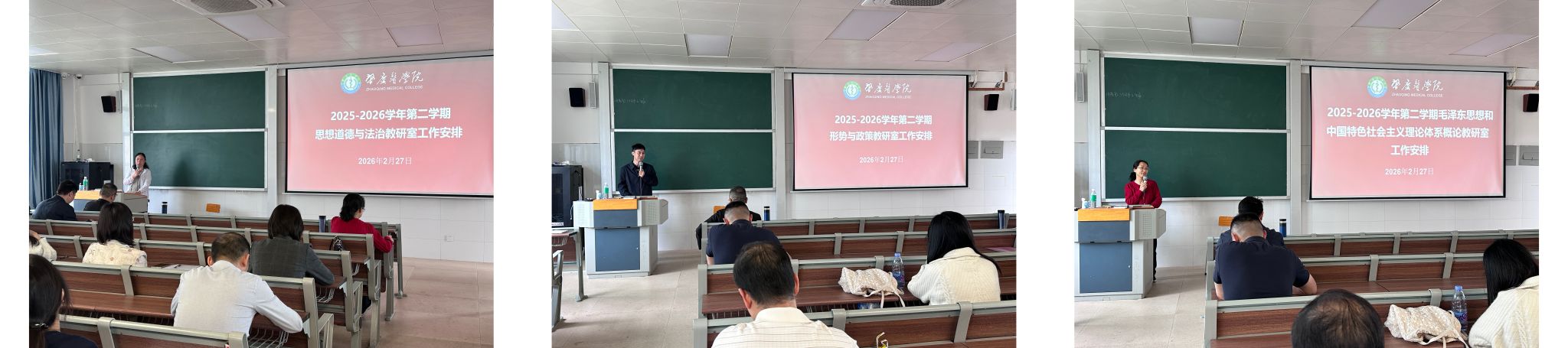 2月27日上午,马克思主义学院在教学楼2-403教室召开2025-2026学年第二学期期初工作会议。会议由行政秘书蔡婷主持,全体专、兼职任课教师参加。