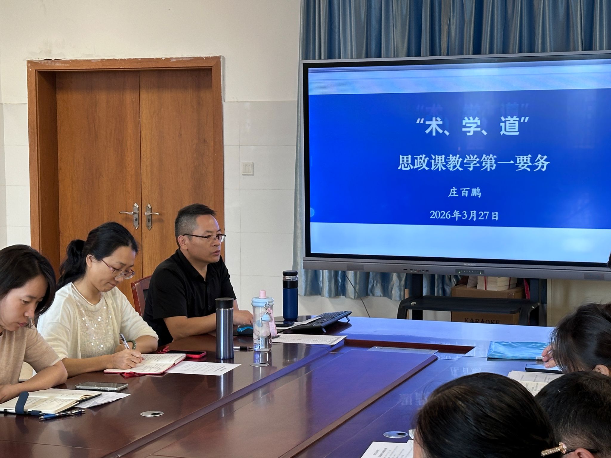 在师德师风学习教育交流研讨环节,党总支书记庄百鹏首先作了以“‘术、学、道’——思政课教学第一要务”为主题的辅导报告,从教学技艺、学识修养和价值引领三个维度深入阐释了思政课教师的核心素养。随后,参会教师结合自身教学实际展开热烈讨论,纷纷表示要将师德师风建设贯穿教育教学全过程,以更高标准推动思政课高质量发展。